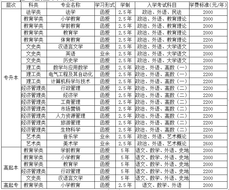 学校立足自身专业布局优势和曲阜日照两校区办学的区域优势,主动适应社会经济发展和人才市场需求,合理调整成人高等教育专业设置,我校成人高等教育招生人数预计12000人,专业包括高中起点5年制本科专业5个、高中起点2.5年制专科专业1个和专科起点2.5年制本科专业20个。